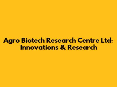 Agro Biotech Research Centre Ltd: Innovations & Research