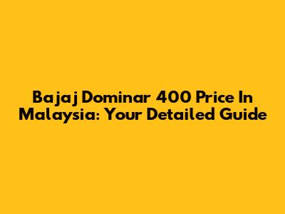 Bajaj Dominar 400 Price In Malaysia: Your Detailed Guide