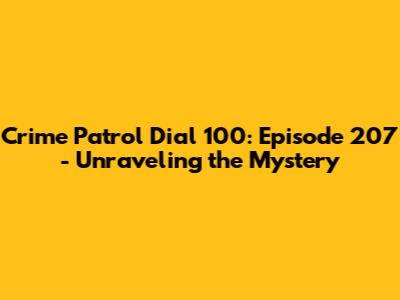 Alright, guys, let's get into the nitty-gritty of episode 207. While specific details can vary depending on the airing and availability of content, we can explore common themes and narrative structures typical of Crime Patrol Dial 100 episodes. Generally, you can expect a perplexing crime that challenges the investigators. This might involve a mysterious murder, a complex fraud, or a kidnapping with unusual circumstances. The episode usually opens with the crime being committed, setting the stage for the investigation.