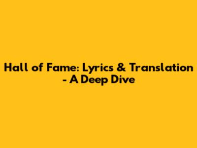 Hall Of Fame: Lyrics & Translation - A Deep Dive