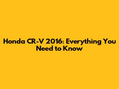 Honda CR-V 2016: Everything You Need To Know