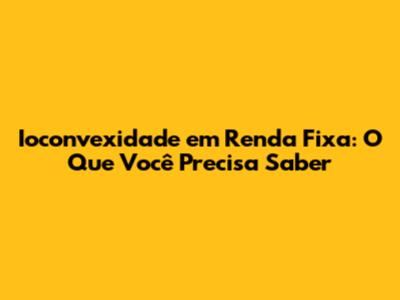 Ioconvexidade Em Renda Fixa: O Que Você Precisa Saber