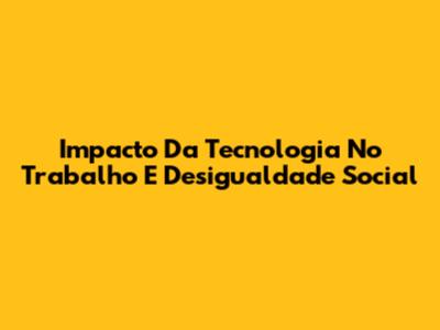 Impacto Da Tecnologia No Trabalho E Desigualdade Social
