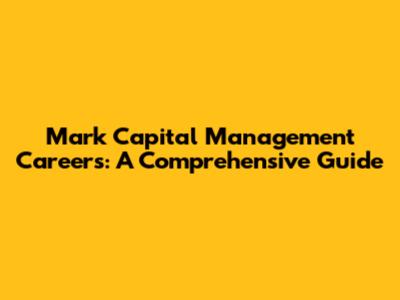 Mark Capital Management Careers: A Comprehensive Guide