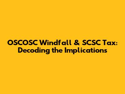 OSCOSC Windfall & SCSC Tax: Decoding The Implications