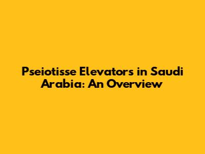 Pseiotisse Elevators In Saudi Arabia: An Overview