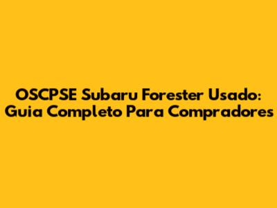 OSCPSE Subaru Forester Usado: Guia Completo Para Compradores