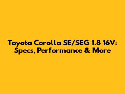 Toyota Corolla SE/SEG 1.8 16V: Specs, Performance & More